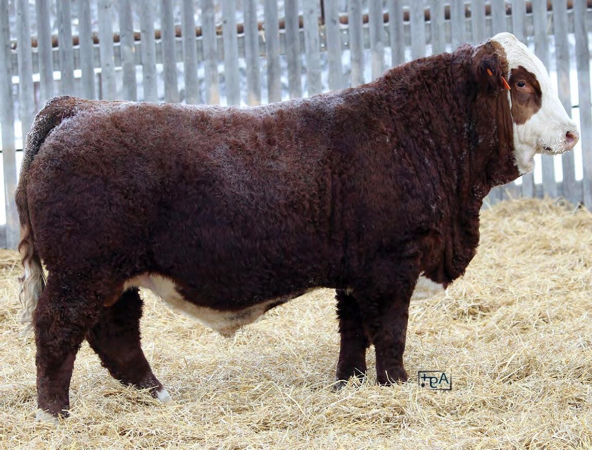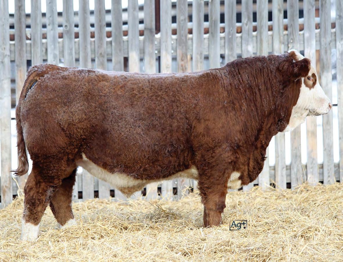 Look at that birthdate, a young calf that weaned up there with the older calves. A calving ease bull that is dense muscled, heavy haired, and powerfully constructed. He has a pedigree full of great females in the Lucy cow family. HEIFER BULL