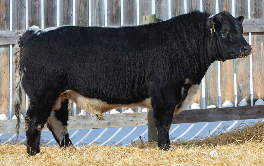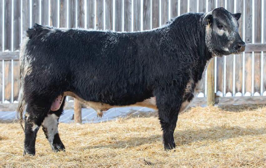 If you’re looking to get spotted calves from your light colored females this black bull is the guy that will do it. With his low birth weight he would work well on both heifers or mature cows.