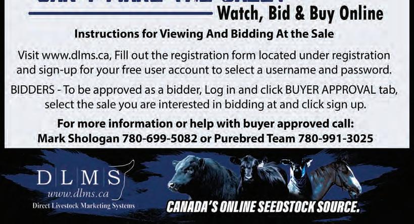 Please remember to register with DLMS prior to April 12 to be able to bid on our sale animals.. You can register online at www.DLMS.ca or call Mark Shologan at: 780-699-5082. The sale will be online again this year but with a little different twist than last year. It will have a live ending.