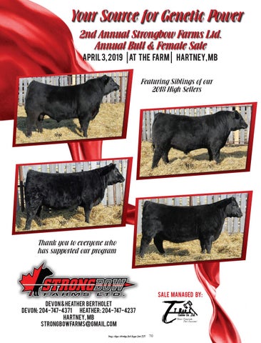 Sale Managed By: Devon & Heather Bertholet Devon: 204-747-4371 Heather: 204-747-4237 Hartney, MB strongbowfarms@gmail.com Today’s Angus Advantage Bull Buyers Guide 2019