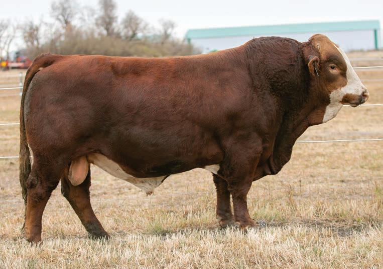 “Massive in every way” is the first thought that comes to mind when you first glance at 721K. He was the $80,000 top selling bull at the Dimler Bull Sale in the Spring of 2024. Large testicles, big feet, huge backed and hair in a long bodied package with a center body you cant miss. Backed by a fault free cow, this is some of the final semen to be offered in 2025. Power with modest BW is the way these Sim cattle are bred to perform, 721K checks all the boxes!