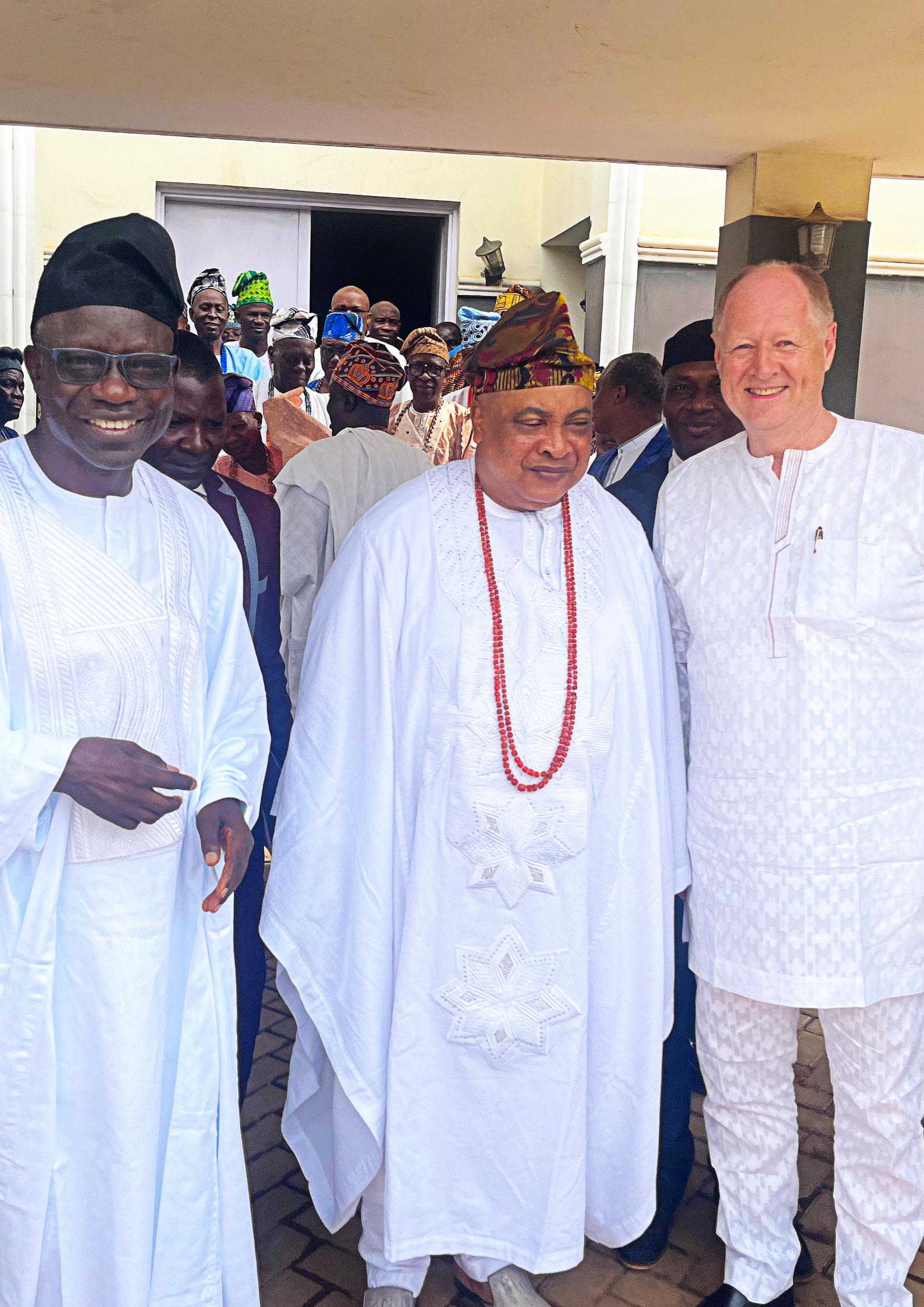 Am Samstag wurden wir vom Akarigbo, dem Oberhaupt der Könige von Remoland, in seinen Palast eingeladen, um für ihn und seine Könige zu beten. Bischof Waleoke und ich ha�en die Gelegenheit zu ihnen zu sprechen und für sie zu beten. Der Akarigbo erzählte, dass kürzlich zwei seiner Könige plötzlich und unerwartet verstorben seien unddassersichwünsche,dass wir für ihn und sein ganzes Königreich beten. Dazu lud er all seine Könige ein, ca. fünfzig an der Zahl. Ich erklärte kurz das Evangelium und führte sie dann in ein Übergabegebet, das alle mitbeteten. EinigevonihnenkamenauchindieVersammlungen.