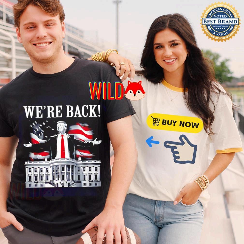 Adam Calhoun wearing Donald Trump We’re Back 45 47 shirt