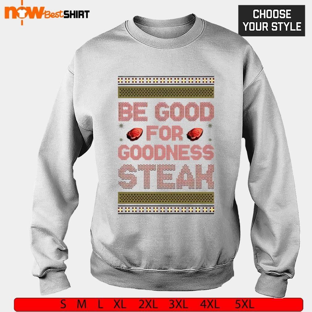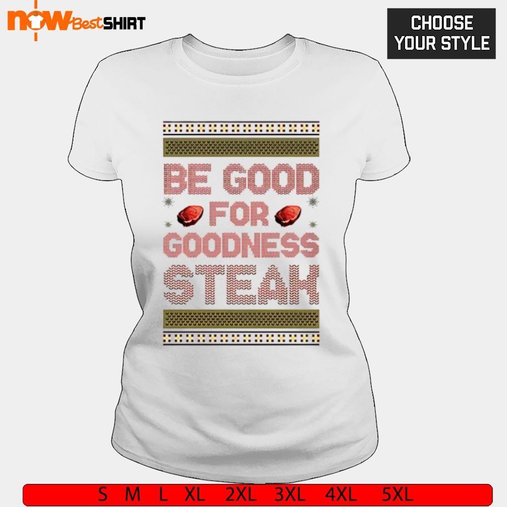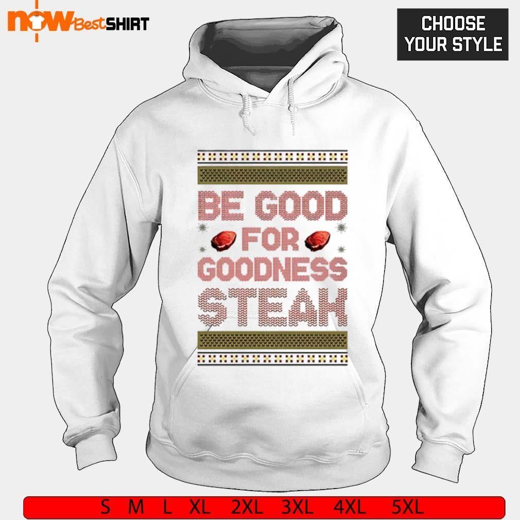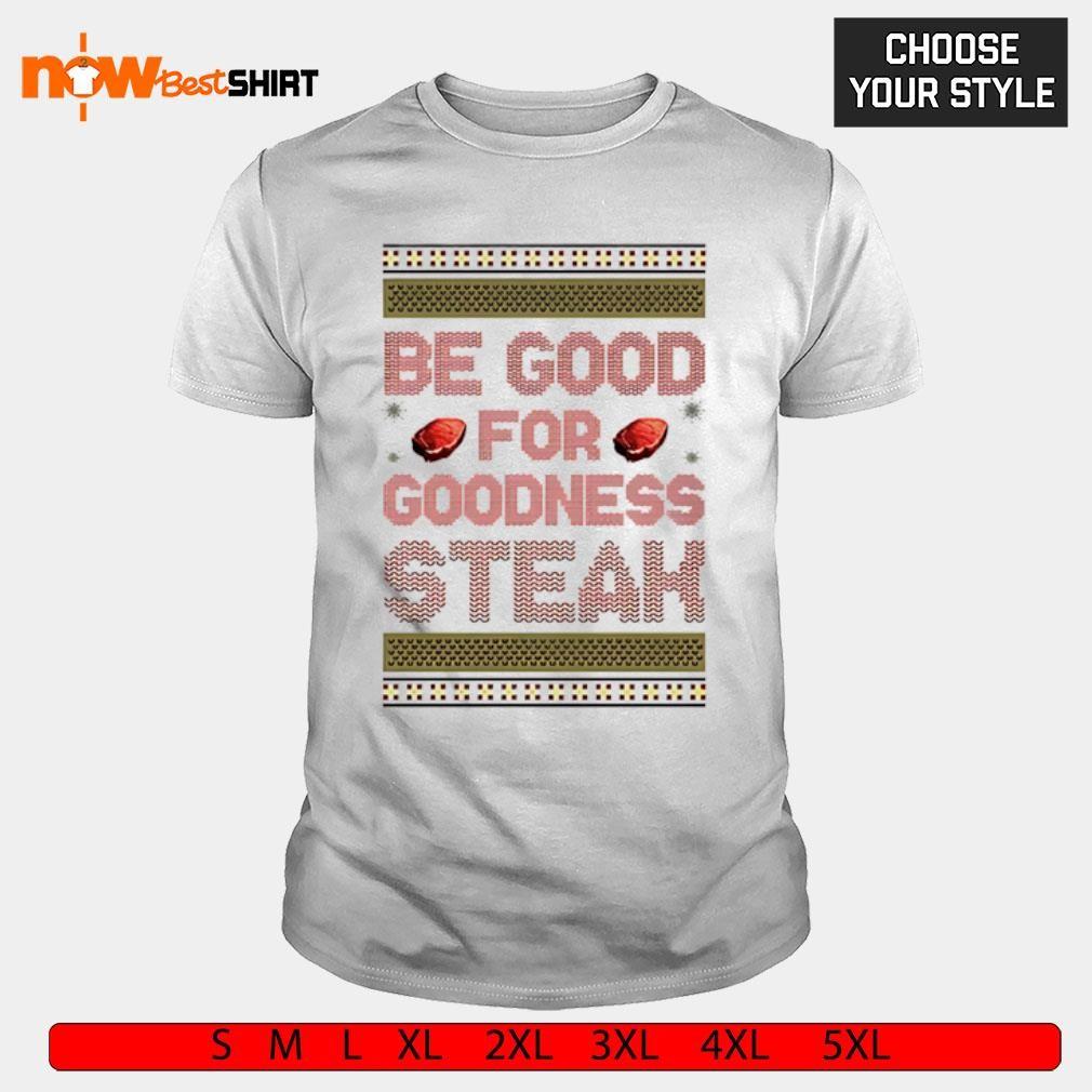 TheBeGoodForGoodnessSteakshirtismadebyNowbestshirtT-shirtFashionTeam Itruns fromXSto5XLsizing It'smadeformen,women,kid,availableonmanystylesasT-shirt,hoodie, sweater,longsleevetee,...onmanydifferentcolors.Youcanbuythisshirtforyourselforyourloved onesasagift,it'sperfect! TheBestFeatures