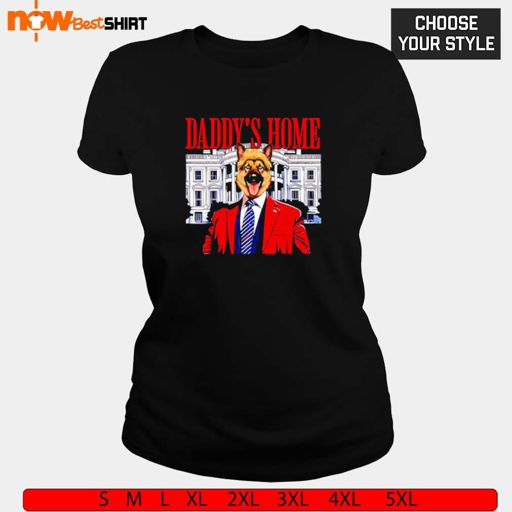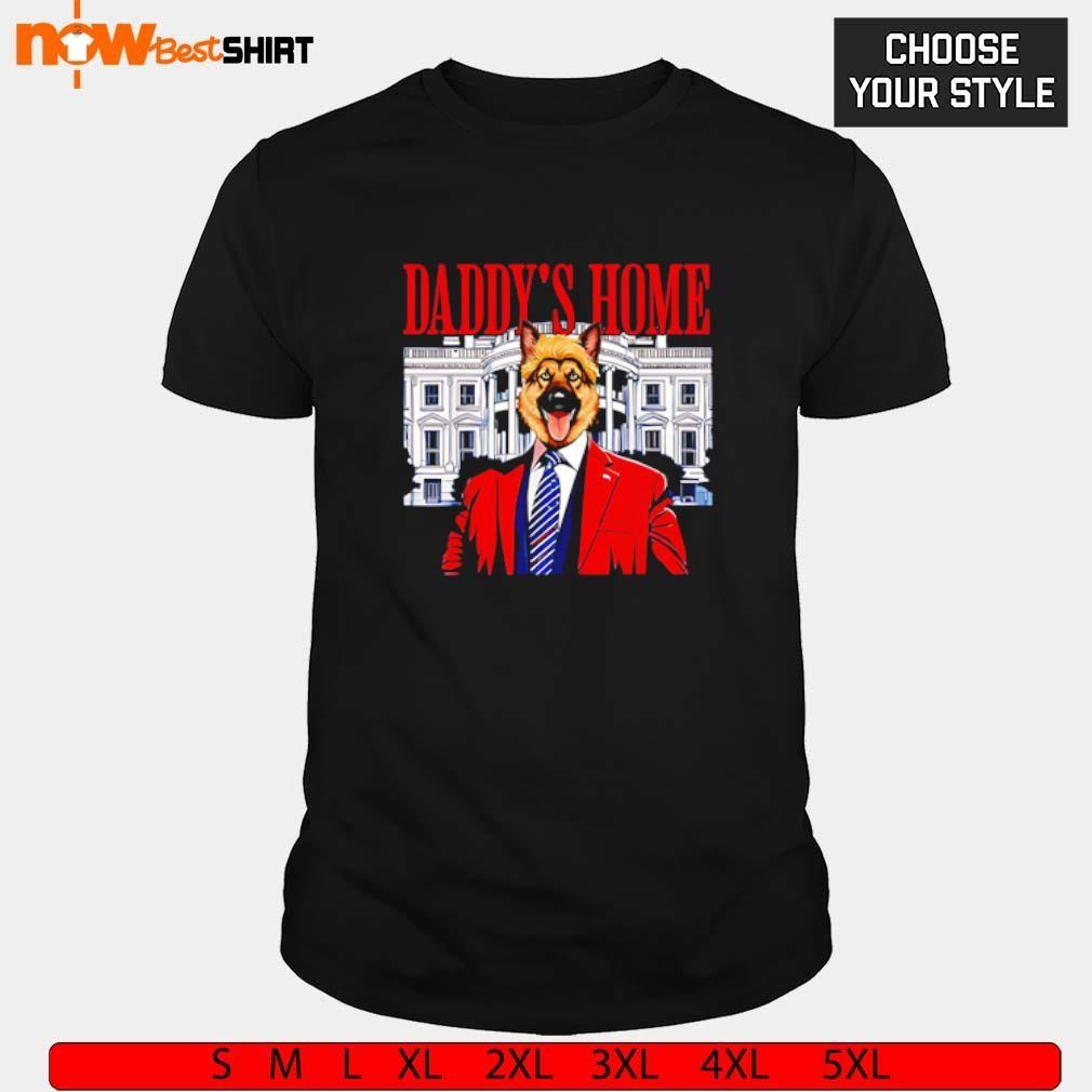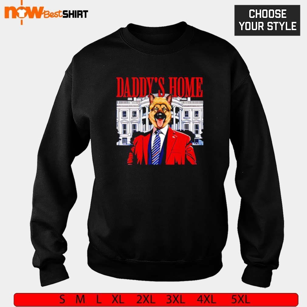 TheDaddy'sHomeGermanShepherdTrumpbackWhiteHouseshirtismadebyNowbestshirt T-shirtFashionTeam.ItrunsfromXSto5XLsizing.It'smadeformen,women,kid,availableon manystylesasT-shirt,hoodie,sweater,longsleevetee, onmanydifferentcolors Youcanbuythis shirtforyourselforyourlovedonesasagift,it'sperfect!
