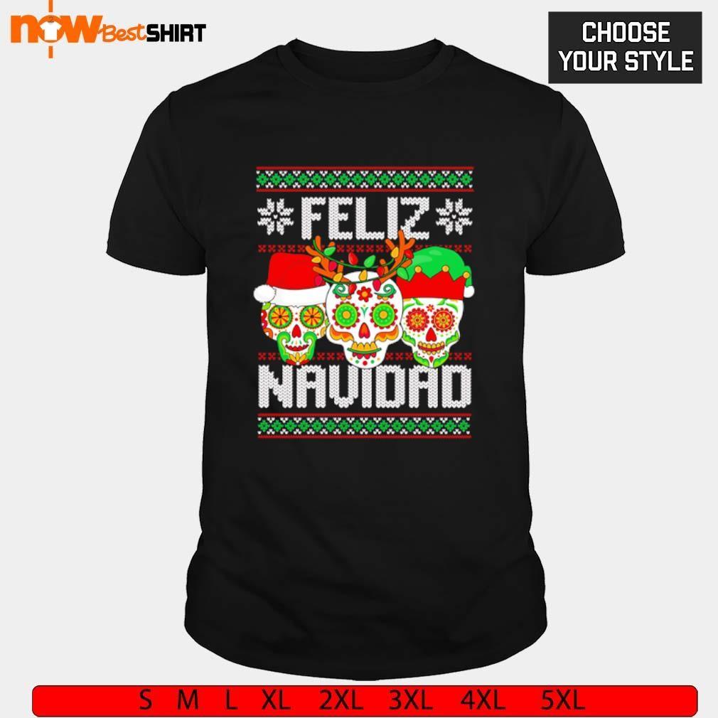 TheFelizNavidadSugarSkullsChristmasReindeerSantaMexicanshirtismadeby NowbestshirtT-shirtFashionTeam ItrunsfromXSto5XLsizing It'smadeformen,women,kid, availableonmanystylesasT-shirt,hoodie,sweater,longsleevetee,...onmanydifferentcolors.You canbuythisshirtforyourselforyourlovedonesasagift,it'sperfect!