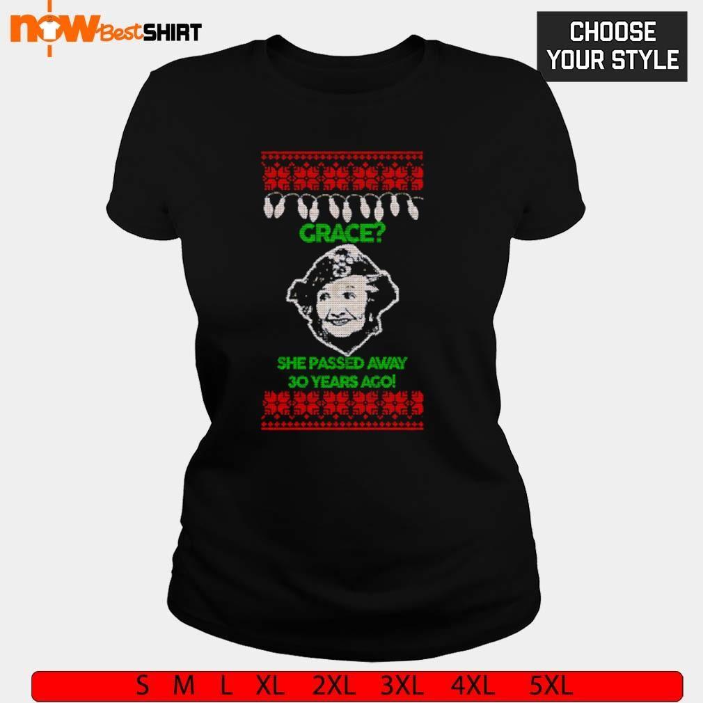 TheGraceshepassedaway30yearagoChristmasVacationshirtismadebyNowbestshirtTshirtFashionTeam.ItrunsfromXSto5XLsizing.It'smadeformen,women,kid,availableonmany stylesasT-shirt,hoodie,sweater,longsleevetee, onmanydifferentcolors Youcanbuythisshirt foryourselforyourlovedonesasagift,it'sperfect!