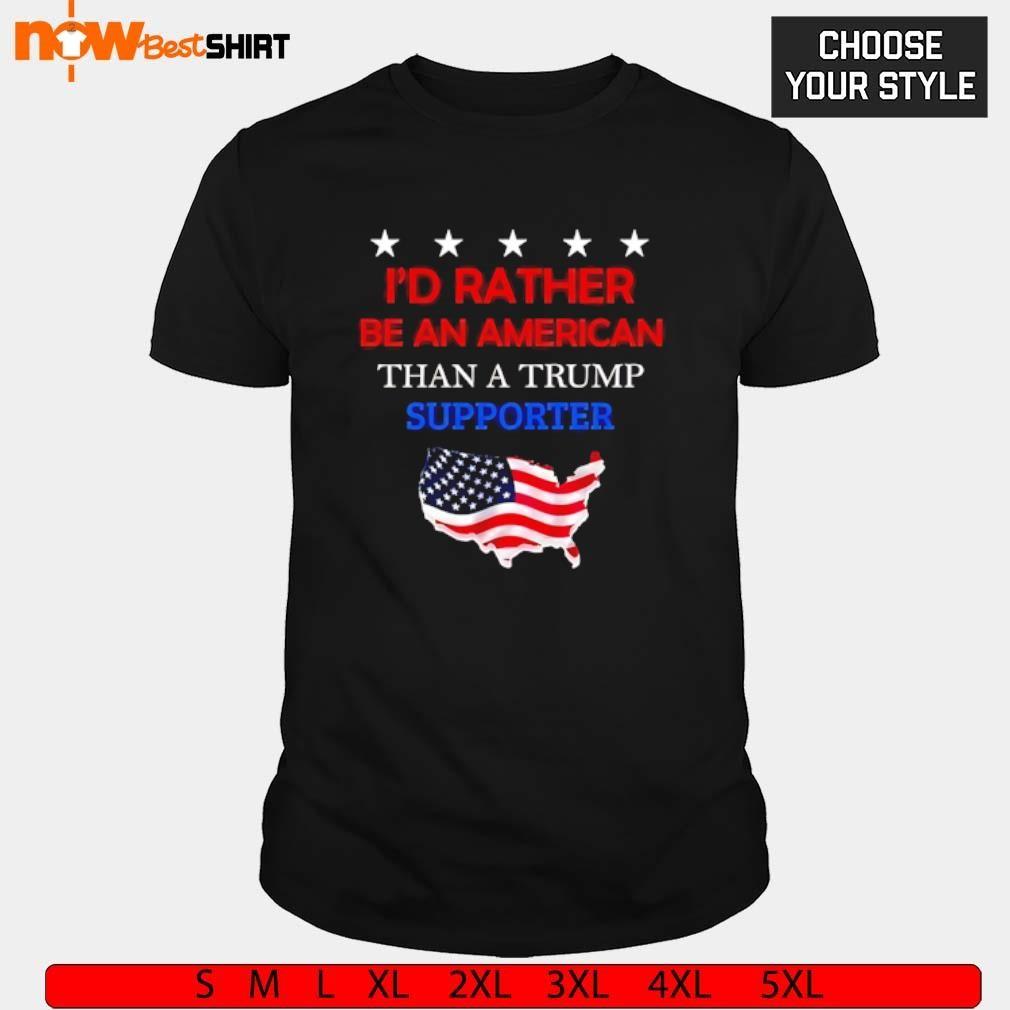 TheI'dratherbeanAmericanthanaTrumpsupporterbringbackTrumpshirtismadeby NowbestshirtT-shirtFashionTeam ItrunsfromXSto5XLsizing It'smadeformen,women,kid, availableonmanystylesasT-shirt,hoodie,sweater,longsleevetee,...onmanydifferentcolors.You canbuythisshirtforyourselforyourlovedonesasagift,it'sperfect!
