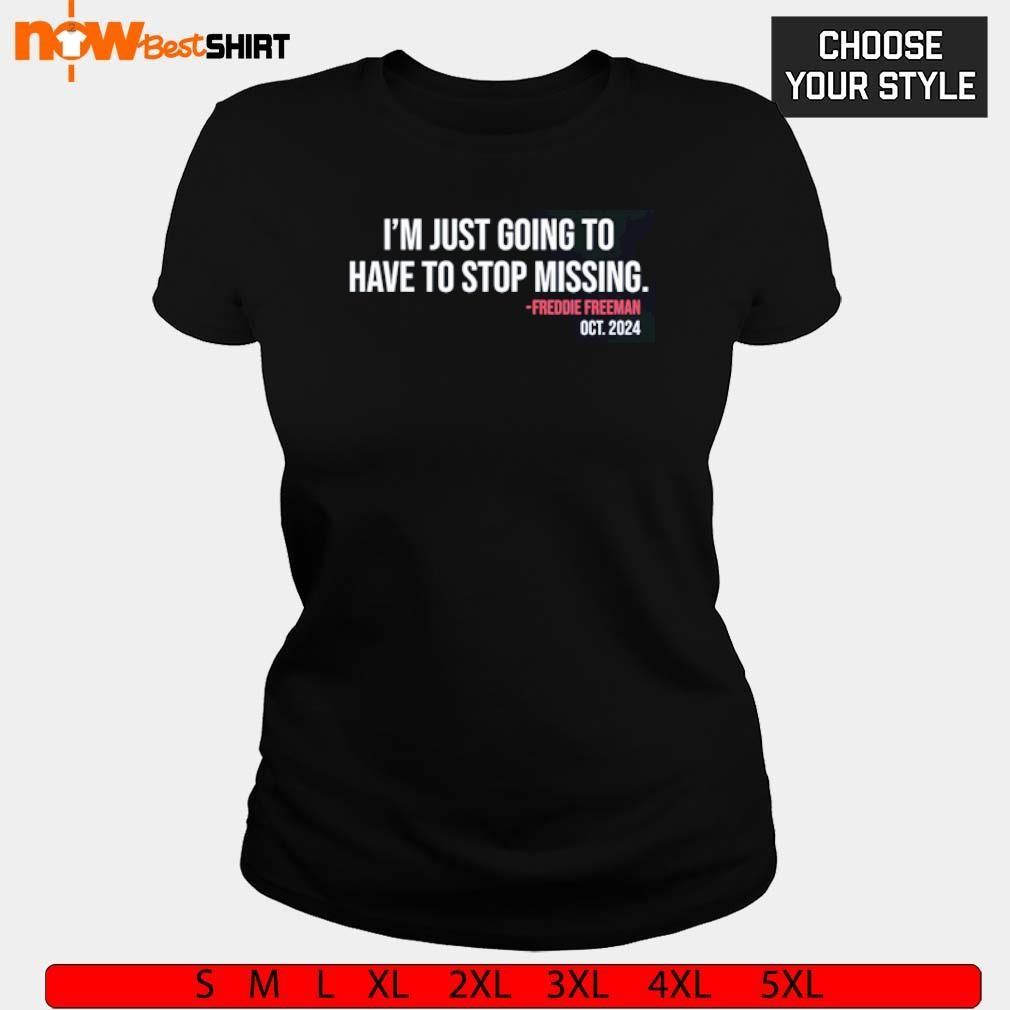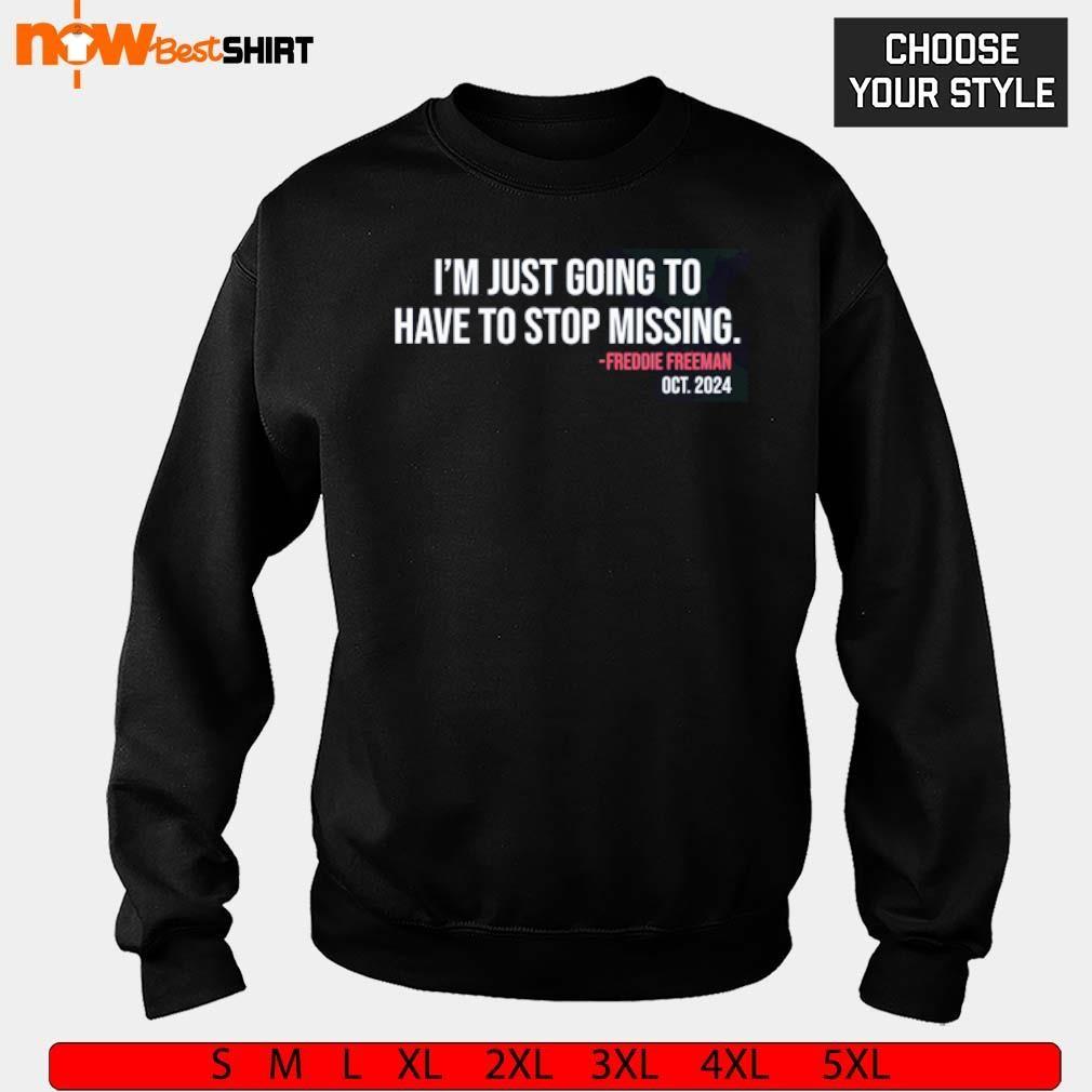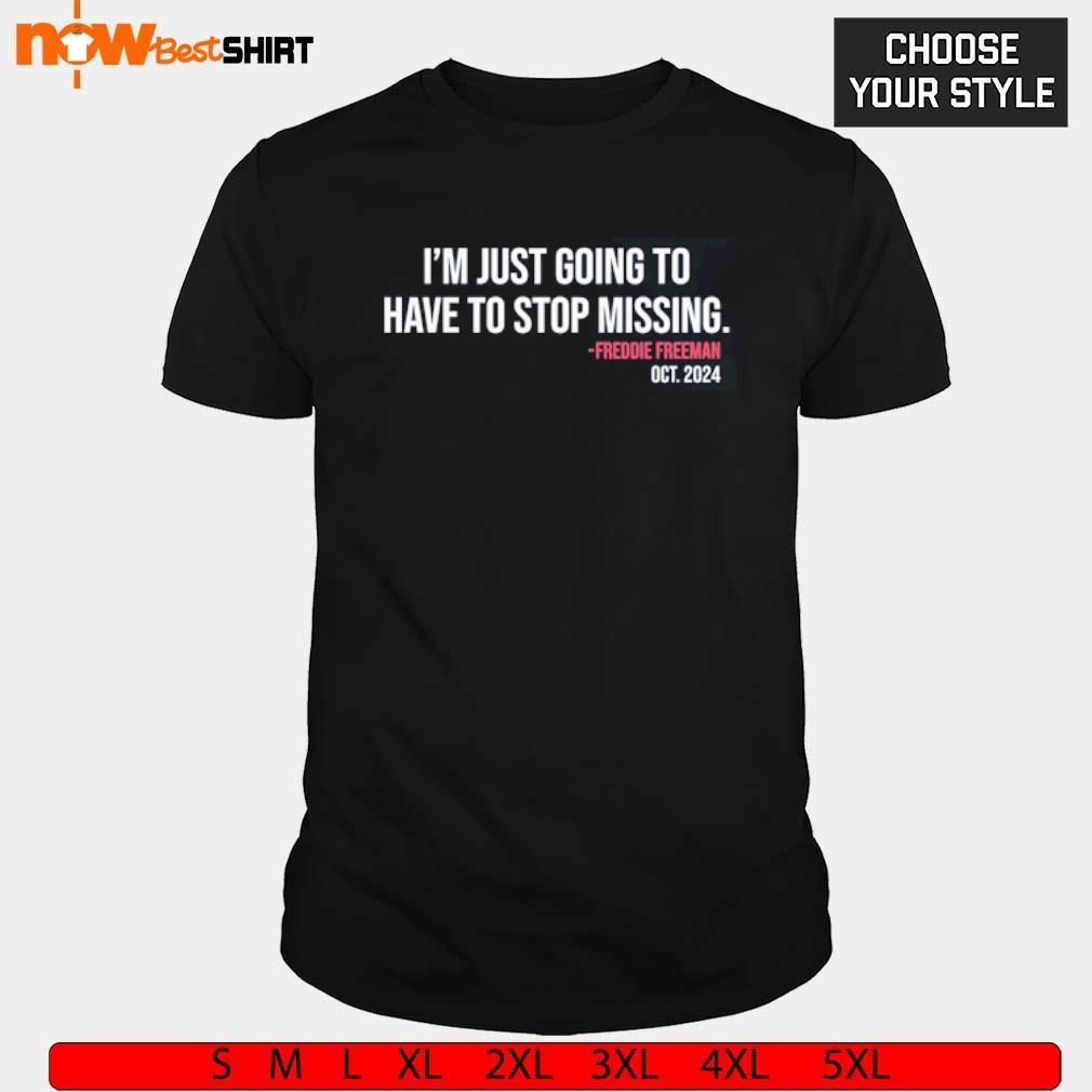 TheI'mjustgoingtohavetostopmissingFreddieFreemanshirtismadebyNowbestshirtTshirtFashionTeam ItrunsfromXSto5XLsizing It'smadeformen,women,kid,availableonmany stylesasT-shirt,hoodie,sweater,longsleevetee,...onmanydifferentcolors.Youcanbuythisshirt foryourselforyourlovedonesasagift,it'sperfect!