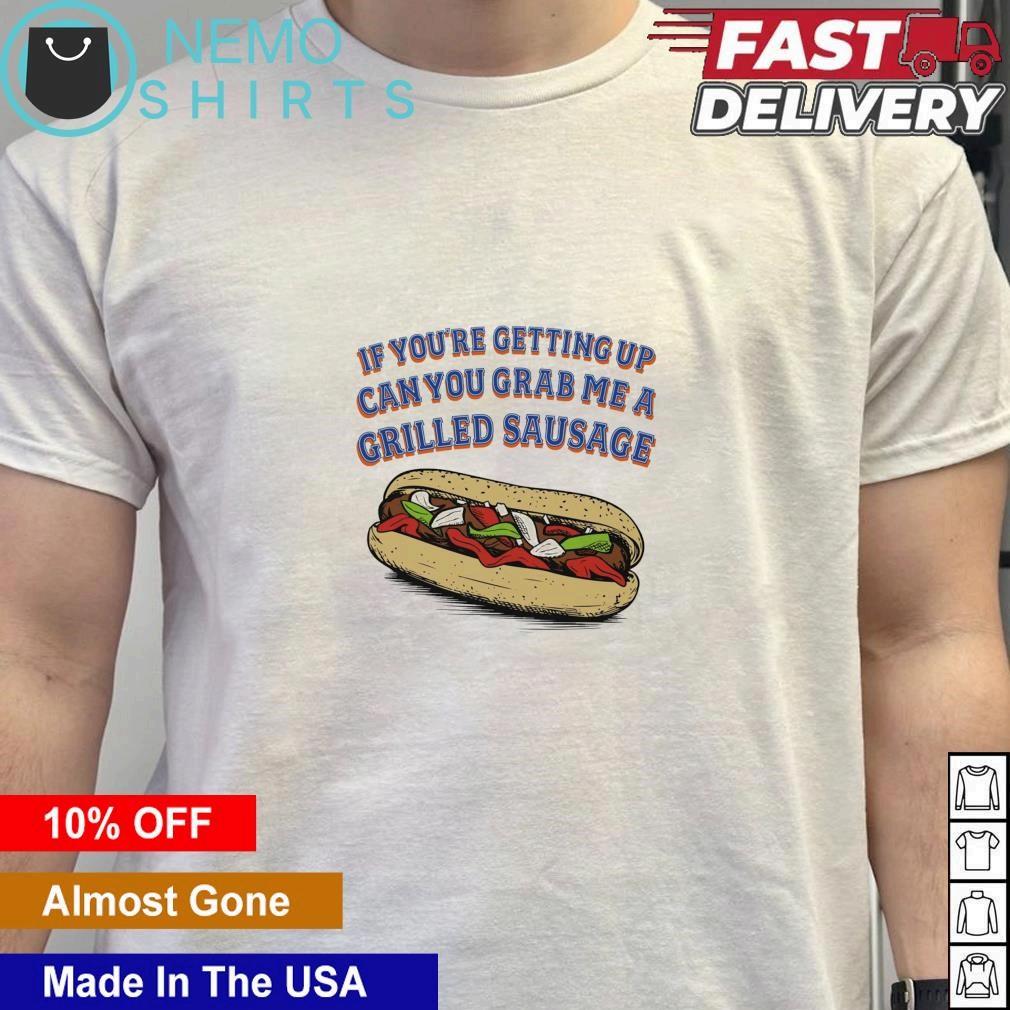 If you ’ re getting up can you grab me a grilled sausage peppers sandwich shirt