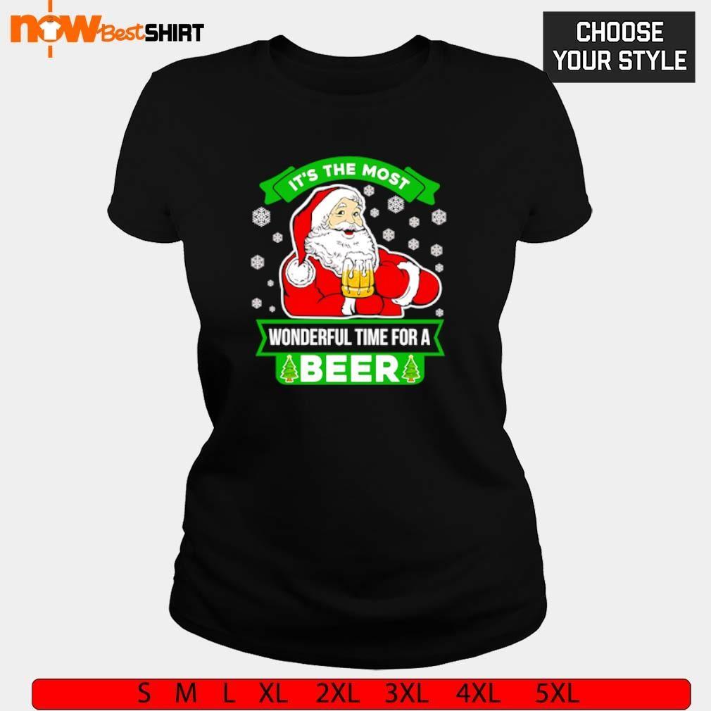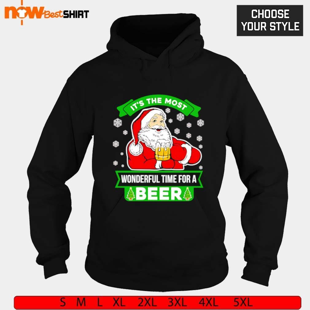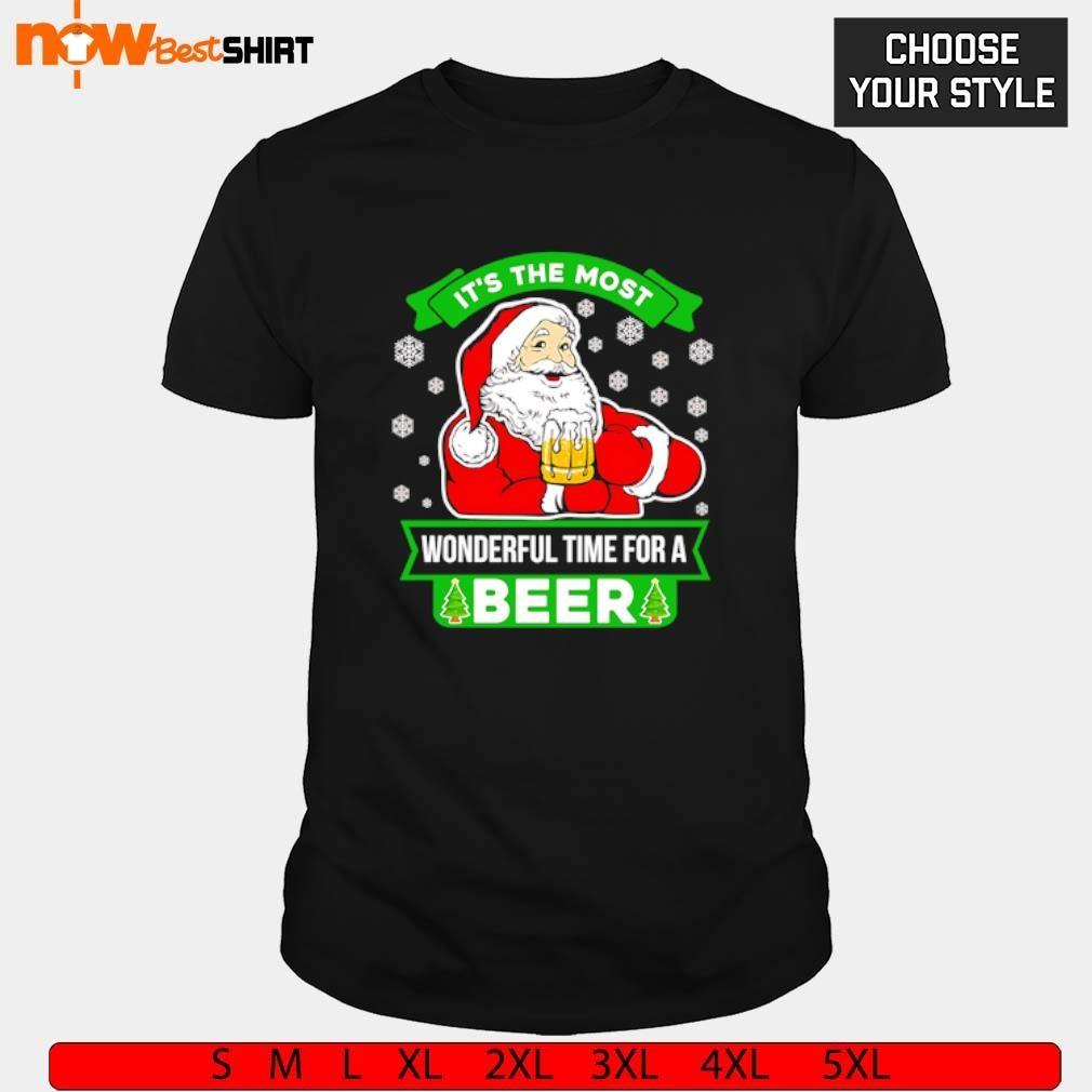 TheIt'sthemostwonderfultimeforabeerSantaClausChristmasshirtismadeby NowbestshirtT-shirtFashionTeam ItrunsfromXSto5XLsizing It'smadeformen,women,kid, availableonmanystylesasT-shirt,hoodie,sweater,longsleevetee,...onmanydifferentcolors.You canbuythisshirtforyourselforyourlovedonesasagift,it'sperfect!