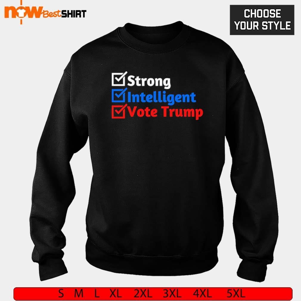 TheStrongIntelligentVoteTrumpMagaChecklistshirtismadebyNowbestshirtT-shirt FashionTeam ItrunsfromXSto5XLsizing It'smadeformen,women,kid,availableonmany stylesasT-shirt,hoodie,sweater,longsleevetee,...onmanydifferentcolors.Youcanbuythisshirt foryourselforyourlovedonesasagift,it'sperfect! TheBestFeatures