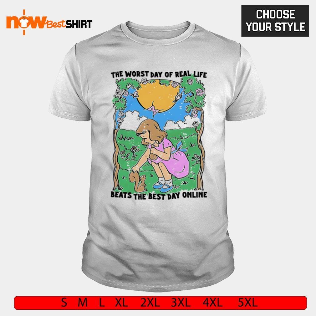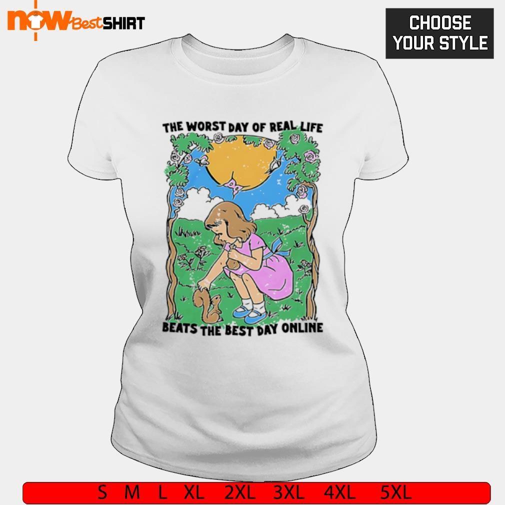 Inthetapestryofhumanexistence,thedistinctionbetweentherealandthevirtualrealmsisbecoming increasinglyblurred Whileonlineplatformsofferanallureofescapismandinstantgratification,theshirtthat reads“Theworstdayofreallifebeatsthebestdayonline”servesasasoberingreminderofthe enduringvalueoftangibleexperiences.