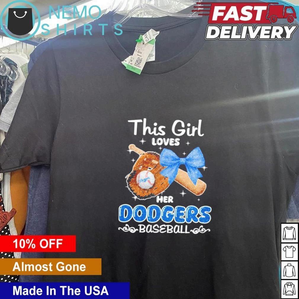 This girl loves her Los Angeles Dodgers baseball bat glove ribbon shirt