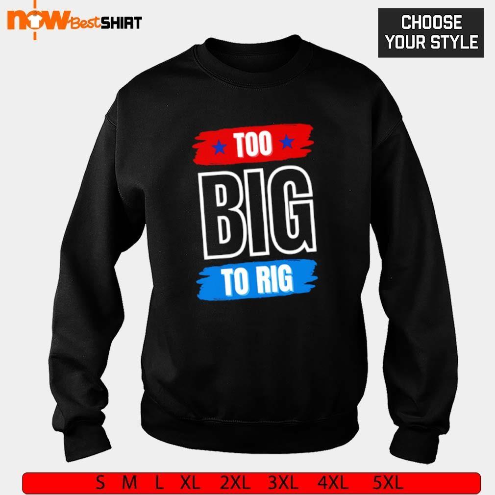 TheTooBigToRigSayingTrump2024shirtismadebyNowbestshirtT-shirtFashionTeam It runsfromXSto5XLsizing It'smadeformen,women,kid,availableonmanystylesasT-shirt, hoodie,sweater,longsleevetee,...onmanydifferentcolors.Youcanbuythisshirtforyourselfor yourlovedonesasagift,it'sperfect!