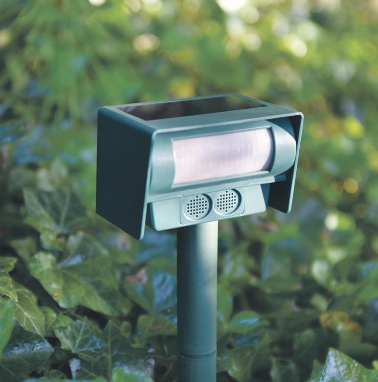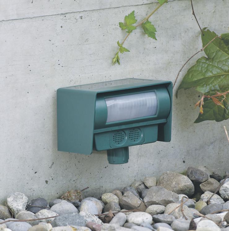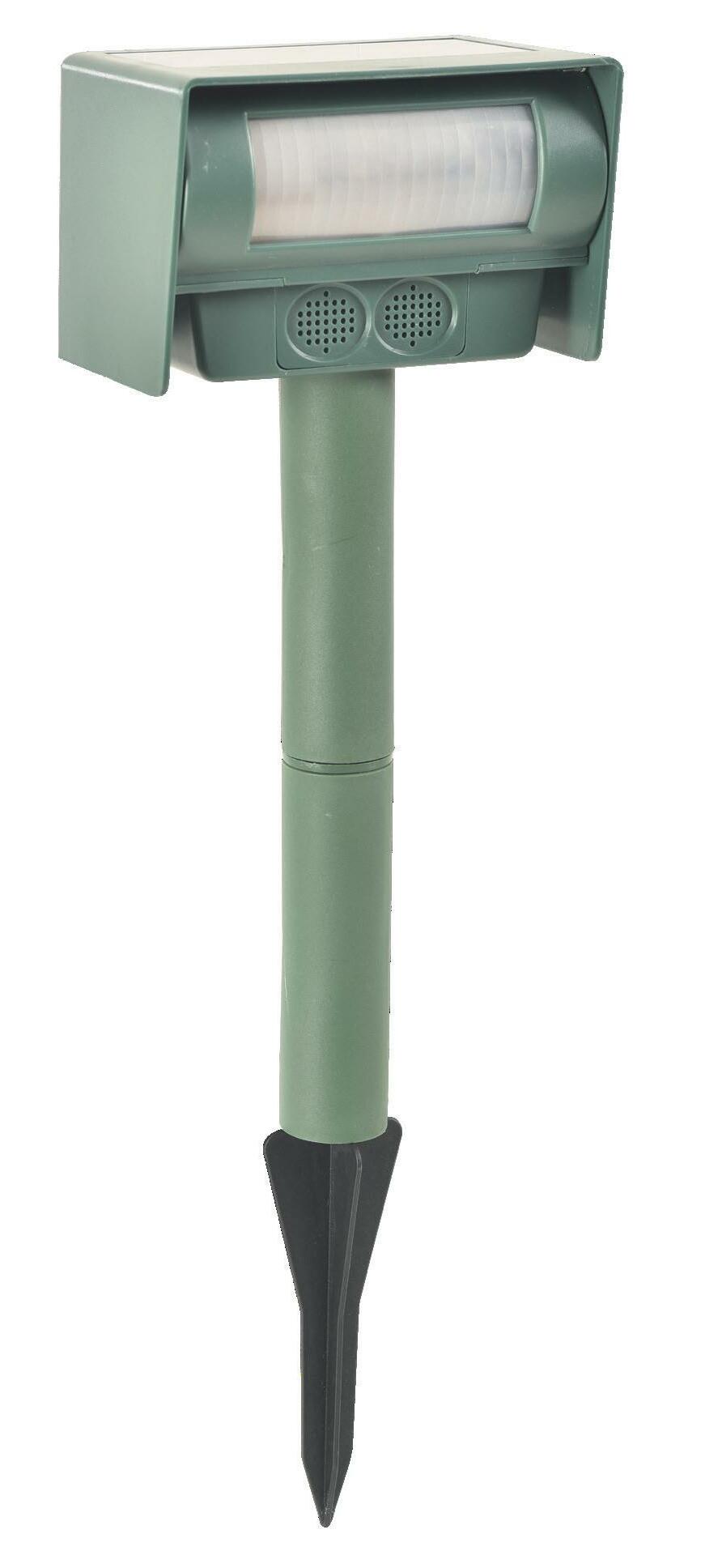 · Signal ultrasons: inaudible pour les humains, mais insupportable pour les animaux; appareil à l‘épreuve des intempéries; peut être fixé à un mur ou un arbre ou planté dans le sol au moyen du piquet en plastique