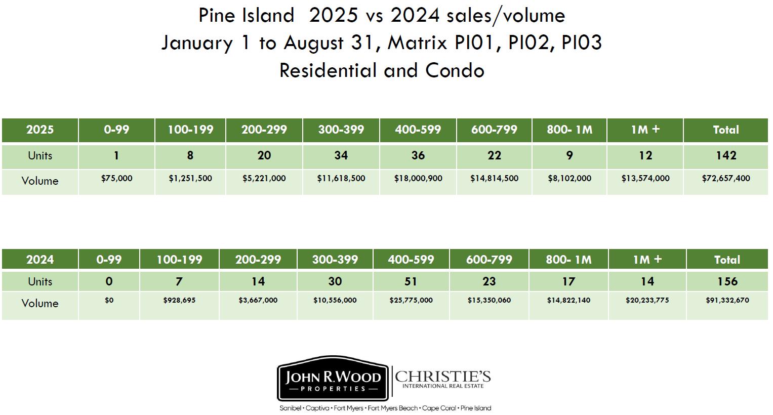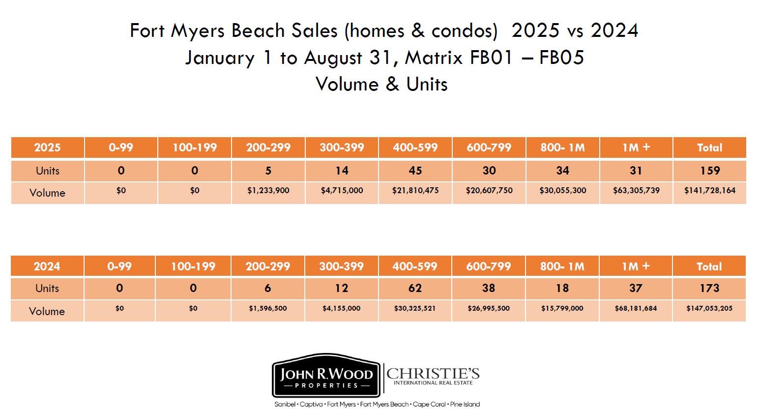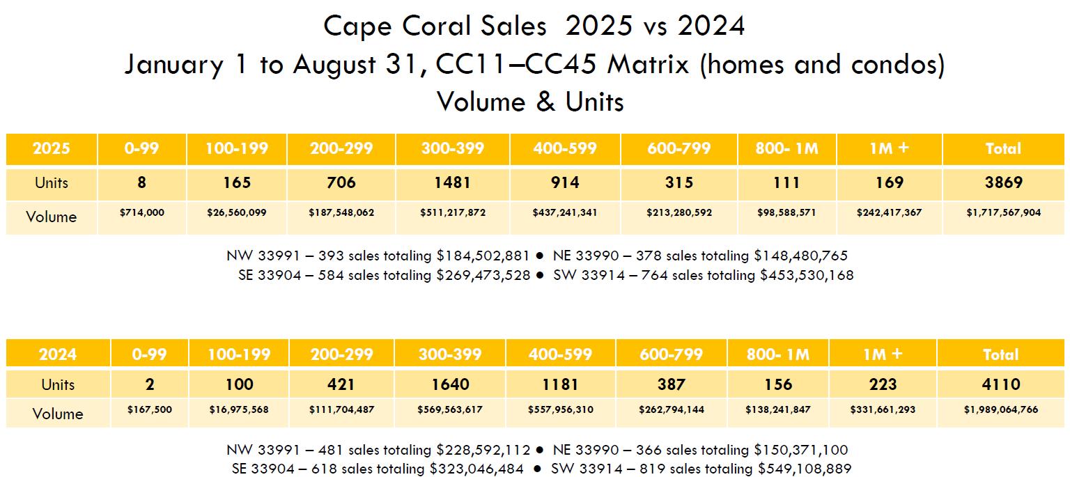 This section breaks down residential and condo sales across Lee County’s key markets: Fort Myers, Fort Myers Beach, Cape Coral , Pine Island, Sanibel,and Captiva. Each page compares 2025 vs. 2024, highlighting units sold, total volume, and price range trends to show how each community’ s market has evolved