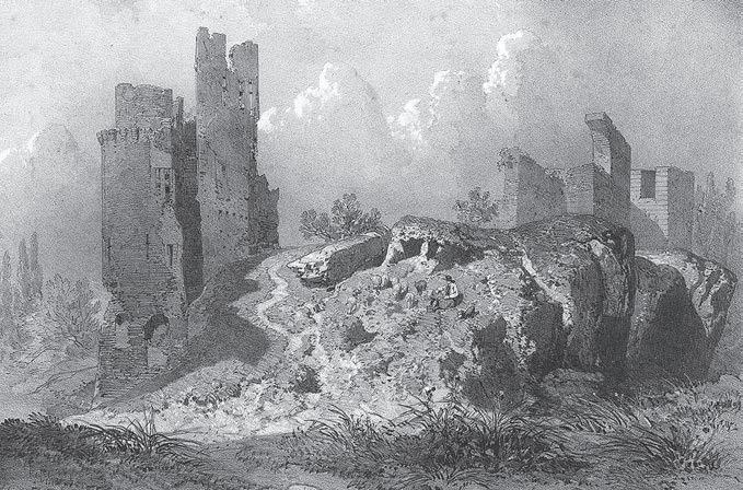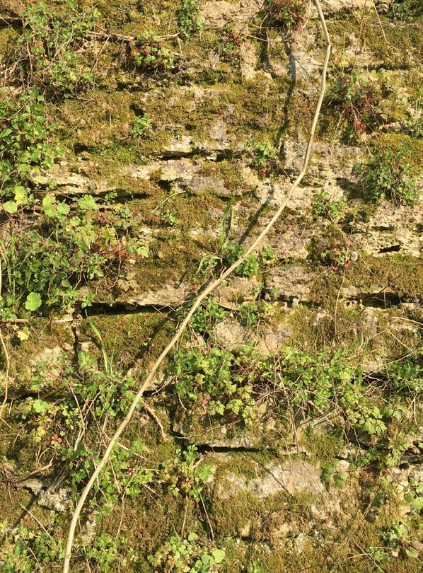 Avec le temps, en perdant toute fonction et toute forme intelligible, il ne reste du château que la pierre de ses murs au travers desquelles se glissent racines et végétation. Il devient ainsi un élément de la topographie, du paysage