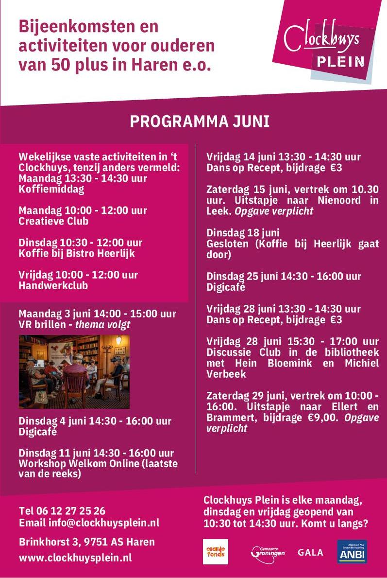 Inloop/ontmoeting in ’t Clockhuys *) – De plaats van vertrek van de wandelclub weet Joke Poelstra (050 534 36 09) - Vervoer met de Stichting Vervoer voor Ouderen naar en van activiteiten in Haren is gratis. Altijd zelf tijdig afspreken (06-23 10 77 53).