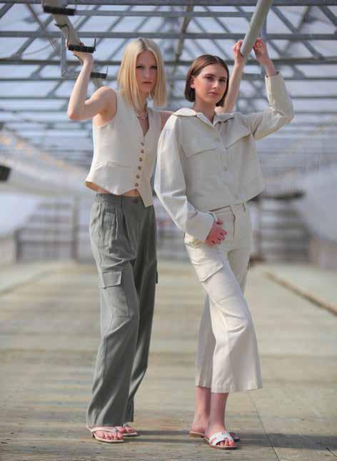 That appears to be the rationale behind this season’s fashion spread that takes a combination biodome and utilitarian approach, involving futuristic designs, while digging into the past to find one’s roots. Think jumpsuits with wide pant legs and cargo pockets for a look that’s not only attractive, but practical. Or bright and colourful ’70s designs hearkening the carefree spirit of that decade melding with muted earth tones to call to attention the need for environmental awareness that future generations will have to wrestle with.