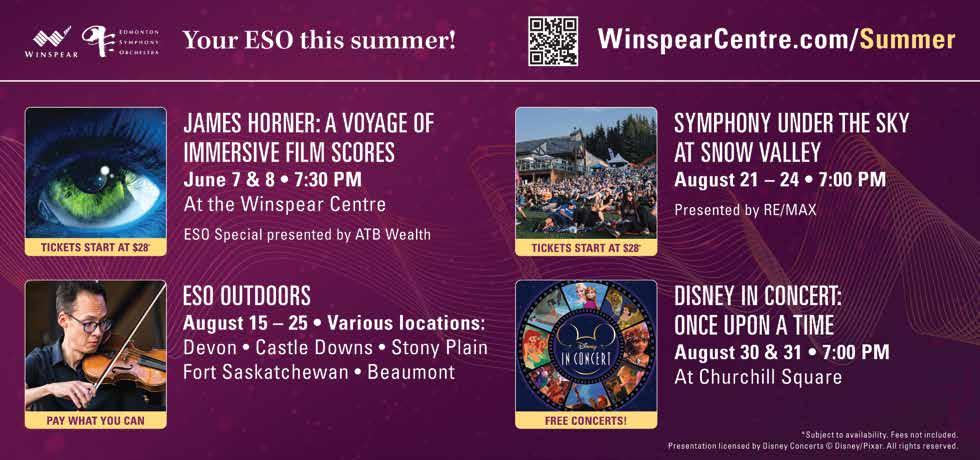 Winspear Centre I 4 Sir Winston Churchill Square I 7:30 pm I $36.50–112 I Your ESO will perform your favourite music and songs from Titanic, The Phantom of the Opera, La La Land, Wicked, and more! winspearcentre.com 780 428 1414