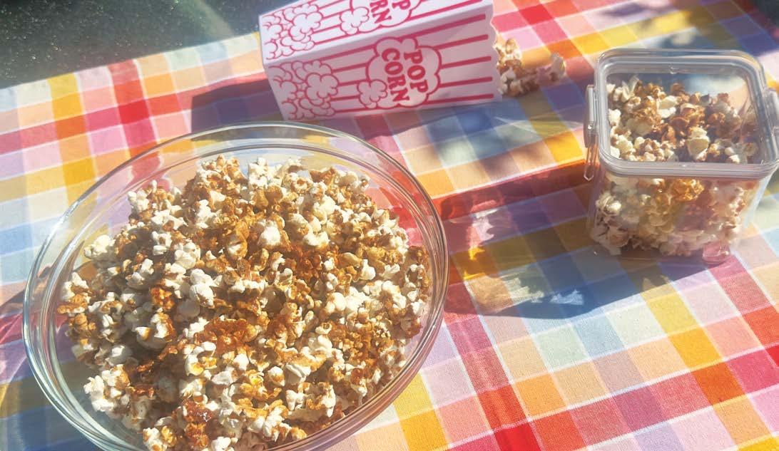 Once the butter is melted, add in the sea salt and baking soda, followed by the maple syrup. Keep a close eye on it; once the mixture comes to a boil, pour it evenly over the popcorn and place the sheet in the oven for 45 minutes.
