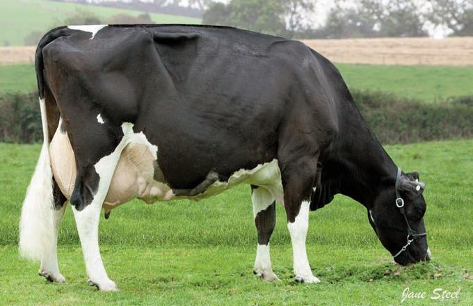 Lot 7, Kilgarriffe Batenburg Daisey is from the Daisey family which originated in the Devon based Thuburough herd of William Ley. This heifer promises to bring exceptional production to her new home. Her dam, Lavaman Daisey VG86, is averaging 10401KG at 4.14%BF and 3.61%PR in her 5th lactation. Batenburg Daisy is sired by Batenburg Michael, a bull that has sired some of the highest producers in the herd currently, including Pietje 18 VG87 (averaging 12,743 @3.97%BF and 3.39%PR in 4 lactations) and Rainbow 16 EX90 (averaging 11,163kg @ 4.32%BF and 3.48%PR in 5 lactations).