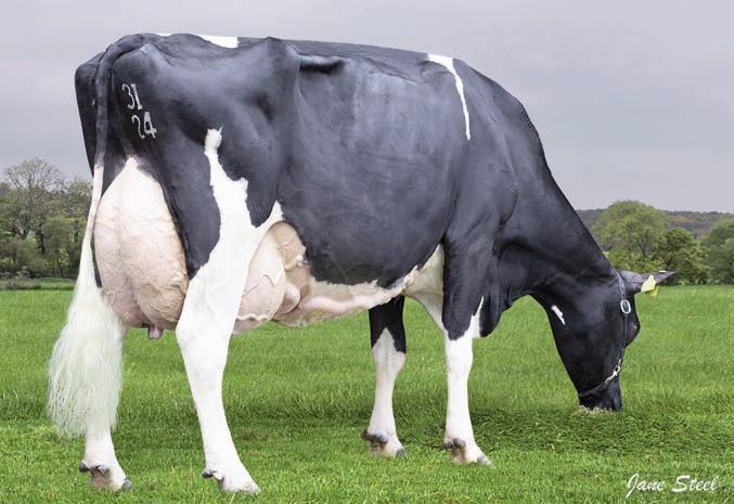 Sire Sire Verified (SNP) Big Redstar (FR5761) by Delta Colorado Dam Kilgarriffe Pepper Daisey 4250 (VG87) by Delaberge Pepper (S2049) Milk Kgs BF% PR% BfKgs PrKgs SCC Days Lact Calving Date 6021 4.74 3.31 285 199 58 305 1 11-09-21 8861 4.68 3.66 415 324 61 305 2 07-10-22 8114 3.64 3.51 295 285 20 305 3 01-01-24 (proj) G Dam Kilgarriffe De Sol Daisey (VG88) by Dansire Shottle Sol (XDO) Milk Kgs BF% PR% BfKgs PrKgs SCC Days Lact Calving Date 7648 4.48 3.35 343 256 112 305 1 27-03-16 8782 4.59 3.50 403 308 64 305 2 08-09-17 8496 4.28 3.61 363 307 109 305 3 08-09-18 6833 4.39 3.53 300 241 210 221 4 09-09-19 3rd Dam Kilgarriffe Daisey 32 (EX92-4E) by Comestar Lavanguard (S693) Milk Kgs BF% PR% BfKgs PrKgs SCC Days Lact Calving Date 8096 4.58 3.41 370 276 44 305 1 06-10-13 9965 4.24 3.35 423 334 200 305 2 18-10-14 8937 4.03 3.30 360 295 90 305 3 15-12-15 10619 4.09 3.38 434 359 97 298 4 05-02-17 11441 4.42 3.24 506 371 134 295 5 18-02-18 8927 4.03 3.39 360 303 273 305 6 28-01-19 9593 3.88 3.13 373 301 239 305 7 02-02-20 6301 4.03 3.24 254 204 81 227 8 26-03-21 4th Dam Kilgarriffe Ob Daisey by O-Man Obelix Milk Kgs BF% PR% BfKgs PrKgs SCC Days Lact Calving Date 6052 3.54 3.53 214 214 104 283 1 03-02-11 7234 3.66 3.53 265 255 33 300 2 15-01-12 7448 3.55 3.47 264 259 36 305 3 27-12-12 5th Dam Kilgarriffe Eden Daisy (VG89) by Cradenhill Eden ET (CIX) 8084 4.13 3.26 334 264 94 305 2 27-02-07 9235 3.67 3.36 339 310 241 305 3 23-10-08 8677 3.85 3.19 334 277 100 305 4 03-03-10 9610 4.02 3.25 386 312 62 305 5 04-11-11 9308 4.12 3.53 384 328 88 305 6 29-06-13