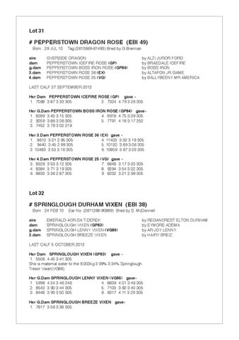 LAST CALF 5 OCTOBER 2012 Her Dam SPRINGLOUGH VIXEN (GP83) gave 1. 5506 4.45 3.41 305 She is maternal sister to the 9,003kg 3.99% 3.34% Springlough Tresor Vixen(VG86). Her G.Dam SPRINGLOUGH LENNY VIXEN (VG86) gave1. 5996 4.24 3.46 246 4. 8839 4.01 3.46 305 2. 8543 3.90 3.44 305 5. 7103 3.92 3.40 305 3. 8448 3.93 3.50 305 6. 6317 4.11 3.29 305 Her G.Dam SPRINGLOUGH BREEZE VIXEN gave1. 7817 3.56 3.38 305