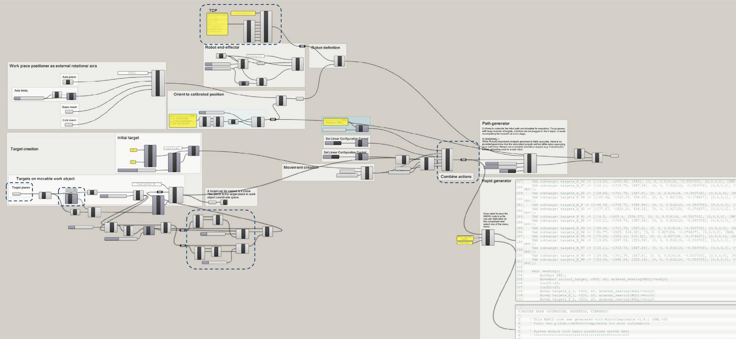 During simulations we found out that robot was out of range so we divided the weaving pattern into 2 portions of the column for easy accesibility