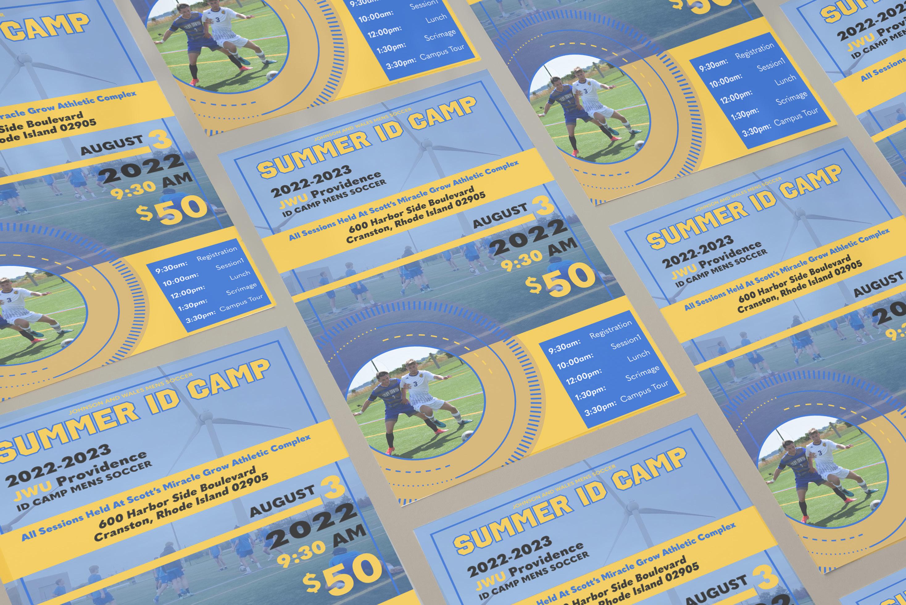 The objective was to conceptualize an event, and design a promotional poster for it making use of creative typographic hierarchy. The JWU mens soccer program has been very prolific in competition over the last few years so it wouldn’t be farfetched for the program to hold an ID camp, however I am yet to hear about the possibility of one happening any time soon so this template may never see the light of day.
