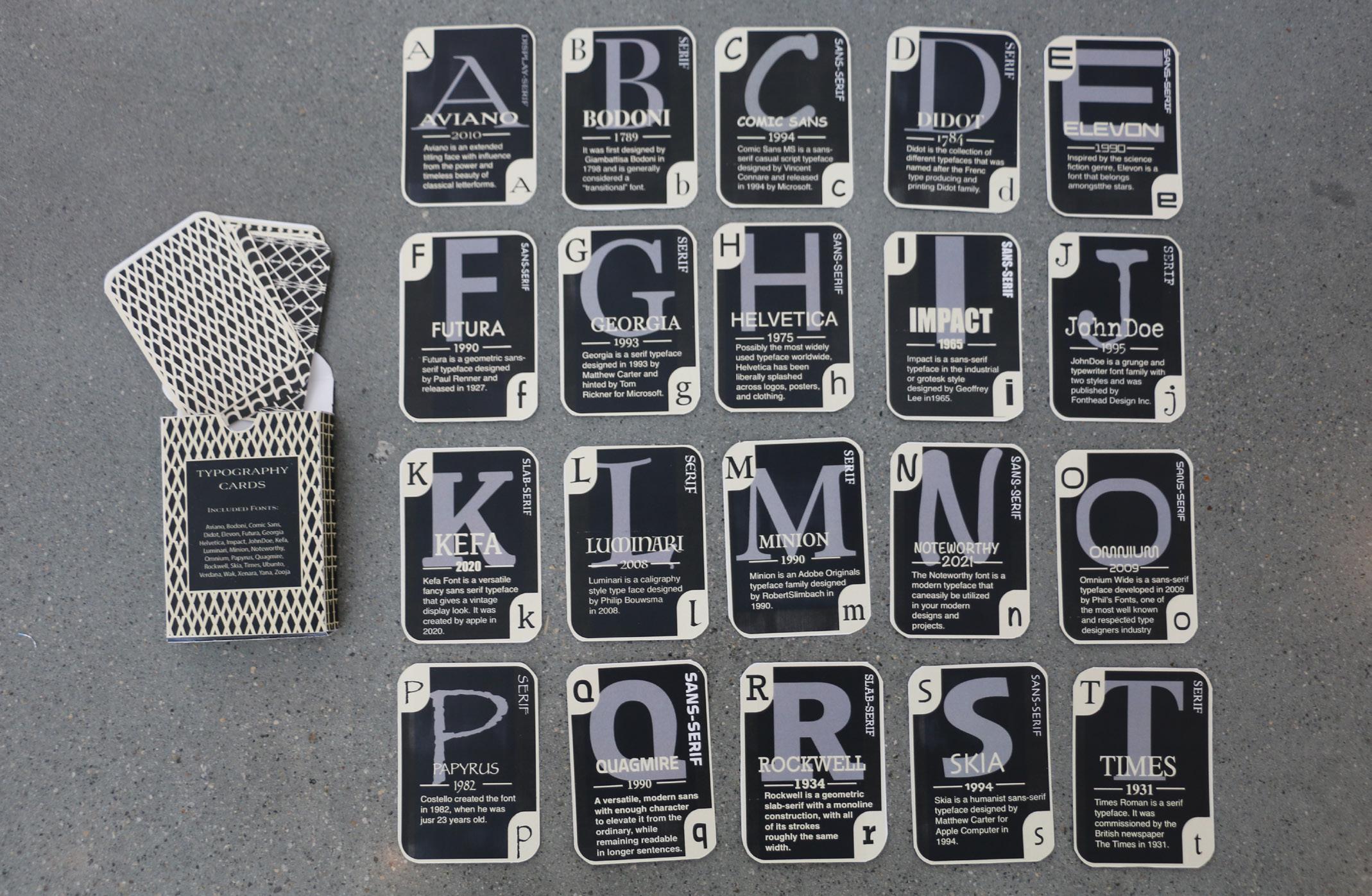 The objective was to create a clean deck of 26 cards with each card representing a different typeface, and each typeface representing a different letter of the alphabet.