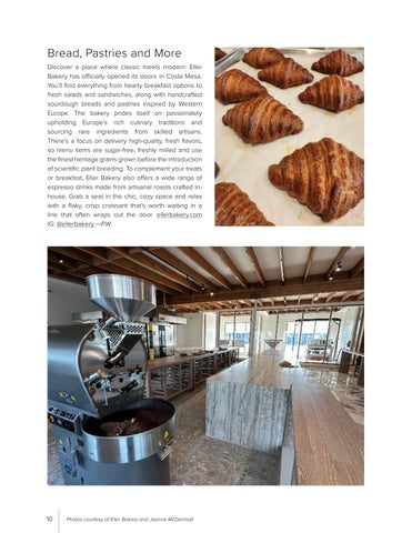 Discover a place where classic meets modern: Eller Bakery has officially opened its doors in Costa Mesa. You’ll find everything from hearty breakfast options to fresh salads and sandwiches, along with handcrafted sourdough breads and pastries inspired by Western Europe. The bakery prides itself on passionately upholding Europe’s rich culinary traditions and sourcing rare ingredients from skilled artisans. There’s a focus on delivery high-quality, fresh flavors, so menu items are sugar-free, freshly milled and use the finest heritage grains grown before the introduction of scientific plant breeding. To complement your treats or breakfast, Eller Bakery also offers a wide range of espresso drinks made from artisanal roasts crafted inhouse. Grab a seat in the chic, cozy space and relax with a flaky, crisp croissant that’s worth waiting in a line that often wraps out the door. ellerbakery.com IG: @ellerbakery —P.W.