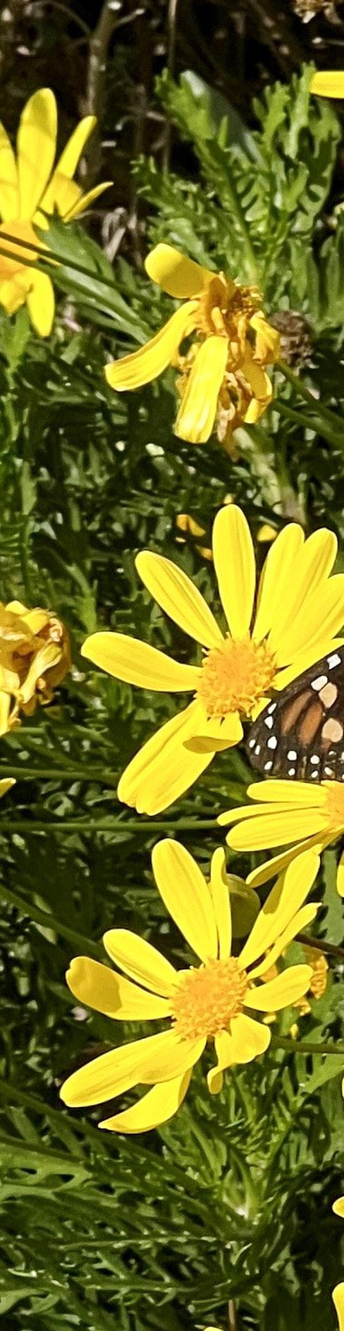 So, the Pollinator Protection Fund was born. Since 2021, Laura has led the effort to help not only monarchs, but other pollinators as well, including various species of bees and hummingbirds. A big part of this push has been the creation of public gardens from Los Angeles to San Diego. Laura herself draws up the blueprints for these naturedriven masterpieces, which can be found in parks, hotels and housing communities along the coast. She also does much of the heavy lifting to add the proper soil and maintain its health before selecting and planting milkweed, native grasses and other plants.