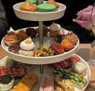 This Michelin-starred restaurant in South Coast Plaza offers an afternoon tea experience that is as decadent as it is elegant. Held every Saturday, the refined ritual begins with your choice of French handcrafted loose leaf teas, followed by a selection of seven savory bites like a Maine lobster eclair and caviar deviled egg, as well as delicate pastries such as a red bean mooncake and Parisian macarons. Indulge with a caviar service upgrade, which includes pomme gaufrette, toasted brioche, and oeufs brouillés along with one ounce of your selected caviar. ($115 per person) knifepleat.com | IG: @knifepleat