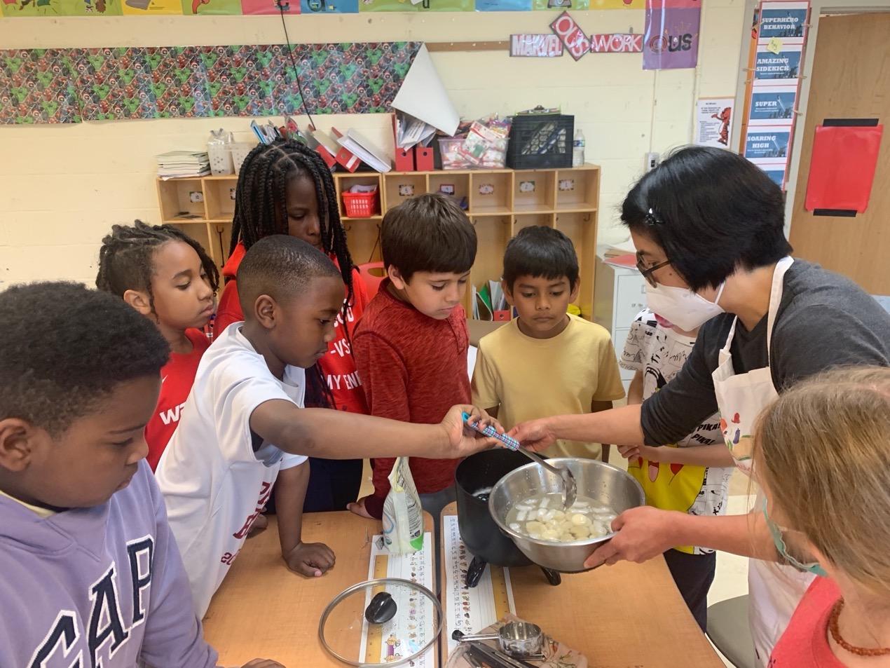 Students participate in chopsticks challenges and learn to cook soybased foods