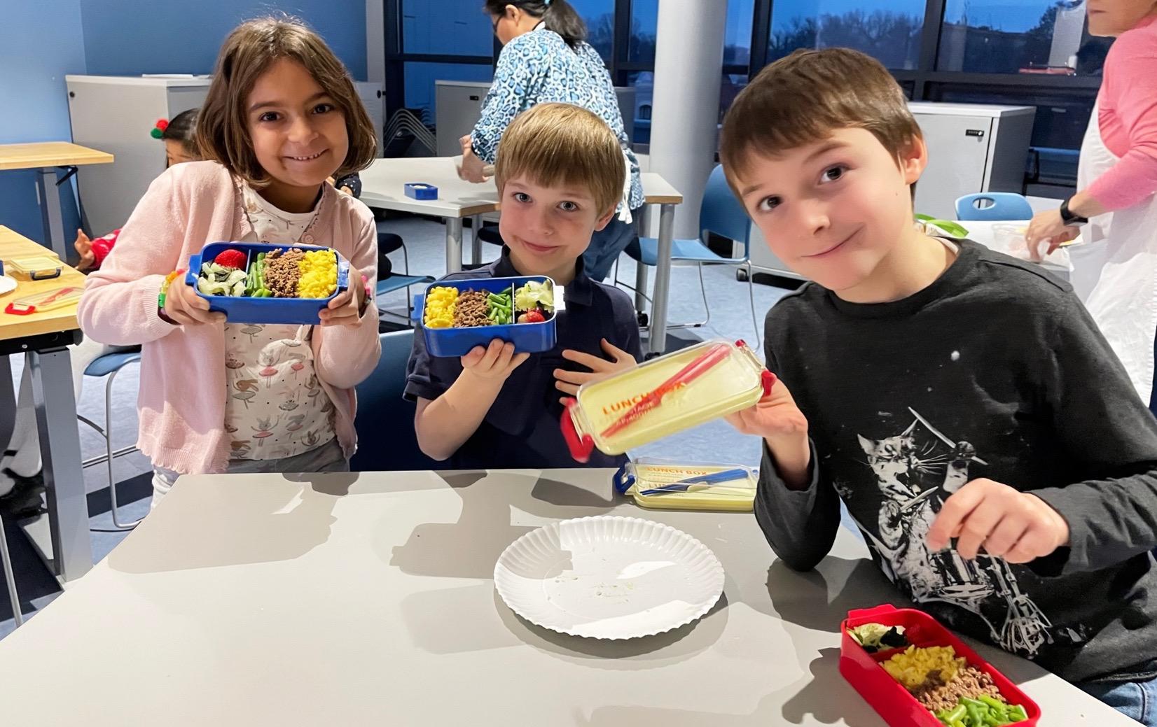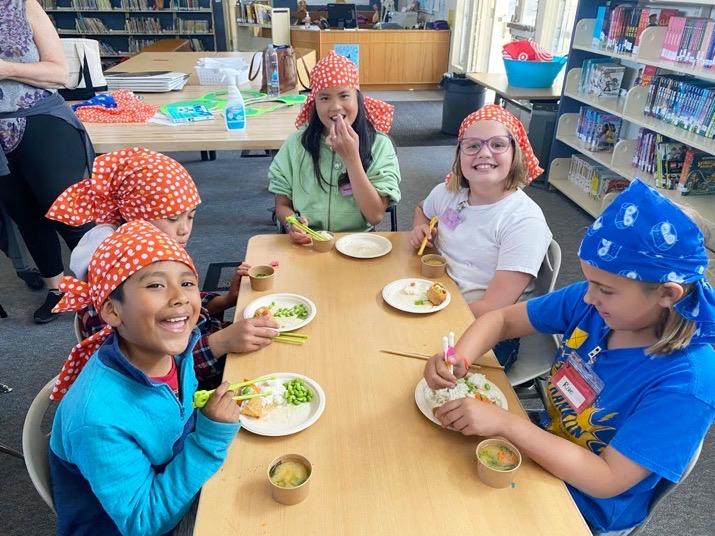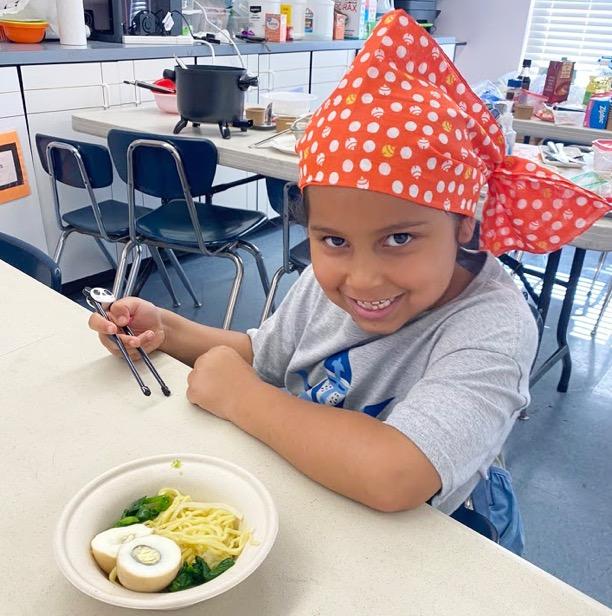 Students participate in chopsticks challenges and learn to cook soybased foods