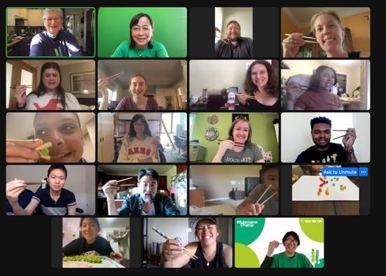 University students from Japan and the USA took turns to post onigiri photos in a fun relay!