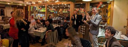 des tahitiens, des tziganes, Jeff Tuche, un traiteur, des danseuses en tutu, un Topgun, un Thor, Lara Croft de Tomb Raider, un tyrolien, un T-Rex et … un Thibaut comme le vrai l’espérait secrètement !