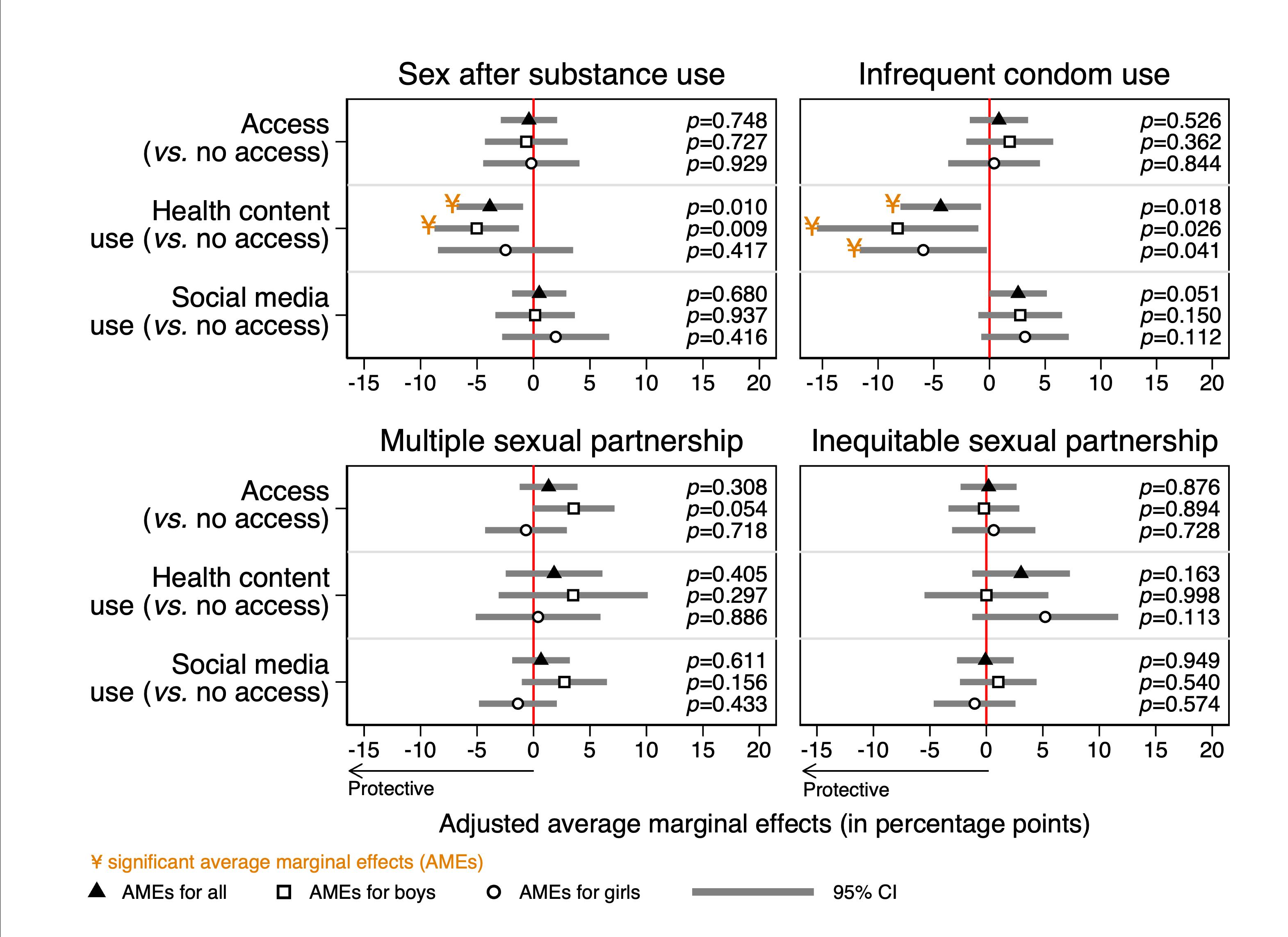 Access and social media use were non-protective of multiple sexual partnership for boys but protective for girls