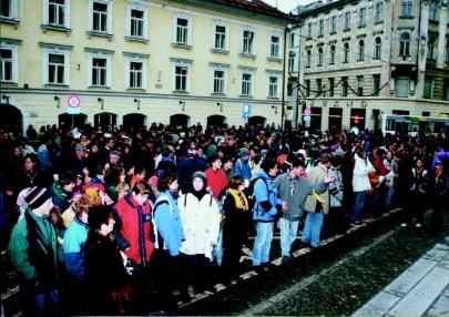 Podobno poteka dogajanje tudi drugod po Evropi, le da ponekod poleg skavtskih organiyacija sodelujejo {e druge, predvsem Rde~i kri` in `elezni{ka podjetja. Saj, kot pravijo organizatorji akcije, ni pomembno, kdo {iri Lu~ miru, pomembno je le, da se Lu~ miru {iri med ljudi!
