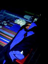 Zaradi `iv`ava na igri{~u so tudi va{~ani ve~krat pri{li pogledat, kaj se dogaja, in pogosto sva se kmalu za tem zna{la v majhni privzdignjeni ~rni hi{ki. Pred nama se je zna{el kro`nik ri`a, kuhan fi`ol in ko{~ek prekajene ribe- dali so nama najbolj{e, kar imajo. Po ve~erji smo tiho posedeli ob ognji{~u, si pogrnili rogoznice in se do naslednjega jutra pogreznili v spanec.