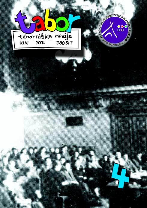 Na naslovnici je fotografija iz ustanovne skup{~ine Zveze tabornikov Slovenije, 22. aprila 1951.
