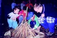 Najbolj zabavno je bilo zagotovo ob ve~erih. Prvi ve~er so morali udele`enci v skupinah in s pomo~jo karte najti pot do Gozdne {ole. Tam smo se sku{ali ogreti ob ognju in z vro~im ~ajem. Ogrevale so nas tudi skupine, saj so morale predstaviti po eno pesem, igro in zgodbico o smrdljivem siru iz Bohinja. Drugi ve~er smo se raje dr`ali notri, ~eprav nam je kmalu postalo vro~e, saj smo se preizku{ali na delavnicah doma~e obrti in med drugim izdelali mozartove kroglice, panjske kon~nice, rudarske kape in okraske iz `ice. [e bolj smo se razgreli ob Kolesu sre~e, ko smo se morali spomniti, kako se v jezikih dr`av udele`enk re~e npr. rutka. Zadnji ve~er je bil seveda najbolj{i, saj smo se preizkusili v ~e{ki polki, pa poljskem "one-two-four" plesu, avstrijskem plesu iz 16. stoletja in neizbe`nem slovenskem rim{im{imu.