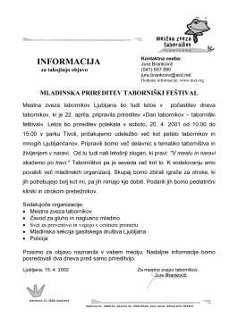 Tabor je tiskan na papirju SORA mat lux, proizvajalca Gori~ane, Medvode d. d. Po{tnina pla~ana pri po{ti 1102 Ljubljana