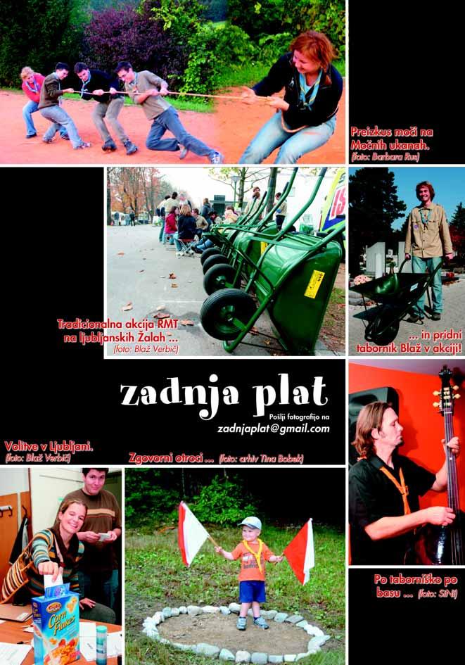 Uredni{tvo: Ale{ Cipot (ales.cipot @ rutka.net) - glavni in odgovorni urednik, Miha Bejek (miha.bejek @ rutka.net) - pomo~nik urednika, Bla` Verbi~ (blaz.verbic @ rutka.net) - urednik fotografije, Meti Buh (meti @ rutka.net) in Ale{a Mrak (alesa.mrak@ siol.net) - urednici sklopa Igra, Toma` Sinigajda (sini @ rutka.net) - urednik sklopa Dogodiv{~ina. Predsednik izdajateljskega sveta: Igor Bizjak (bizi @ rutka.net). Novinarji in sodelavci: Barbara Ba~nik (barbara.bacnik @ rutka.net), Jaka Bevk (jaka.bevk@ tele-cable.net), Sergeja Bogovi~ (sergy @ rutka.net), Ga{per Cerar (gapi_nevem @ email.si), Borut Cerkveni~ (borut.cerkvenic @ guest.arnes.si), Darko Jenko (darko.jenko @ siol.net), Lea Kavali~ (lea.kavalic @ guest.arnes.si), Klemen Kenda (bubi @ rutka.net), Primo` Kolman (primoz.kolman@ yahoo.com), Frane Merela (frane.merela@ guest.arnes.si), Boris Mrak (boris.mrak @ epn.ba), Tadej Pugelj (pugy @ rutka.net), Lea Repi~ (lea.repic @ siol.net), Nasta Roblek (kricakraca @ yahoo.com), Ale{ Skali~ (amerikanec@ rutka.net), Simona Strgulc Kraj{ek (simona.strgulc @ bf.uni-lj.si), Maja Strnad (m.strn4d @ gmail.com). Lektoriranje: Miha Bejek (miha.bejek @ rutka.net). Ustanovitelj , izdajatelj in lastnik Zveza tabornikov Slovenije, Ljubljana, Parmova 33. TABOR sofinancira Ministrstvo za {olstvo in {port Republike Slovenije. Naslov uredni{tva: Revija Tabor, Parmova 33, 1000 Ljubljana. Telefon 01/30008-20, fax 01/4361-477, e-po{ta: tabor@ rutka.net, info@ zts.org. WWW: http://www.zts.org. Cena posameznega izvoda je 500 SIT, letna naro~nina je 5000 SIT, za tujino pa letna naro~nina s pripadajo~o po{tnino. Transakcijski ra~un: 02010-0014142372. Rokopisov in fotografij ne vra~amo. Upo{tevamo samo pisne odpovedi do 31. januarja za teko~e leto. Revija izhaja vsak drugi petek v mesecu. DDV je vra~unan v ceno. Grafi~na priprava in tisk: Tridesign d.o.o., Ljubljana. [tevil-