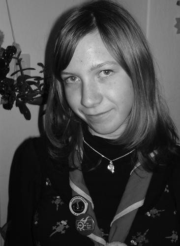 Je modrooka, `ivahna GG-jevka, ki se pri tabornikih zadr`uje `e dolgo ~asa. Za~ela je kot murn~ek v Rodu stra`nih ognjev v Kranju in tu nekaj ~asa nadaljevala svojo zabavno pot. Potem jo je premamila dru`ba v {oli, vendar se je vrnila k tabornikom kot M^. Sedaj je ponosna ~lanica voda Becke, ki v svoji vodnici vidi vzor vedno nasmejanega in pozitivnega ~loveka. Taka je namre~ tudi sama. Pravi, da je pri taborni{tvu najbolj{a zabava, zato se zelo rada s prijatelji udele`i marsikatere improlige in zabavnih ve~erov, ko je treba, pa tudi orientacije.