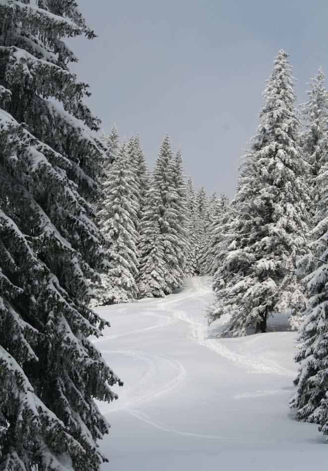 Če zaradi snega ne moremo nabrati drv po tleh, nalomimo suhe veje v smrekovem gozdu.
