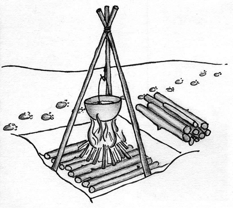 Ker tla prekriva snežna odeja, moramo napraviti ognjišče, ki nam ogenj dvigne od tal.