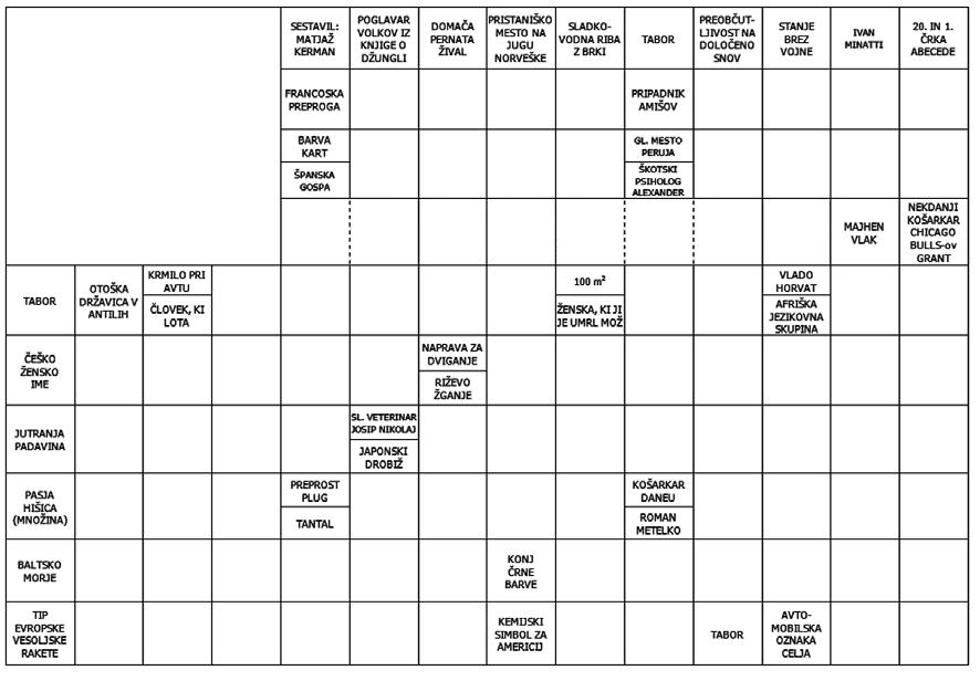 Rešitve: zvezdica, oko, flika na šotoru, dim, kamni okoli ognja, žlica v lončku, poleno